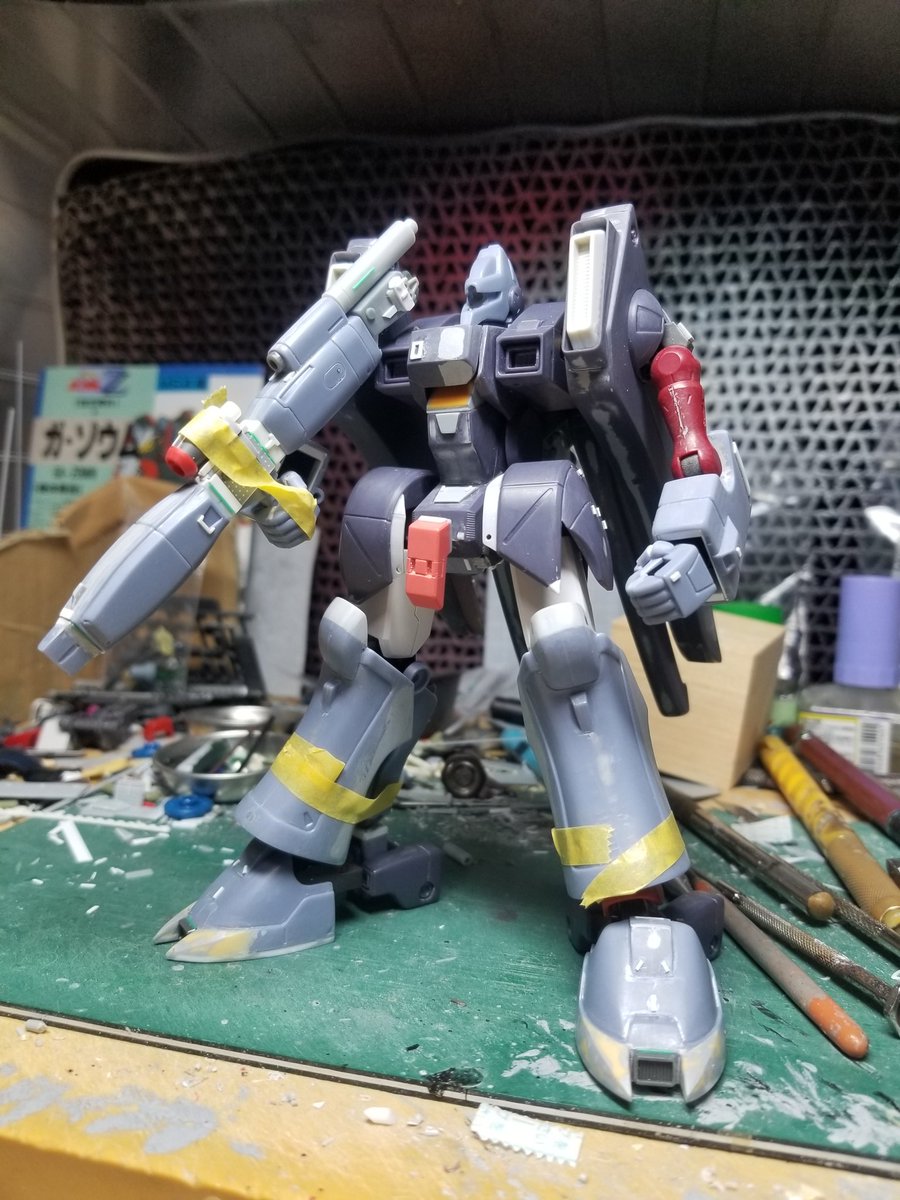ガルスj製作日誌。 接着しなければいけないパーツや取り付け方の調整はあるものの基本工作は終了。 設定画もキットもアニメ画もゲームCGも全て異なるガルスj・・・ 今風な感じにしていったらUC版っぽくなったので結果オーライ! #ガンプラはどんな自由な発想で作ってもいいんだ #ガンプラ #旧キット