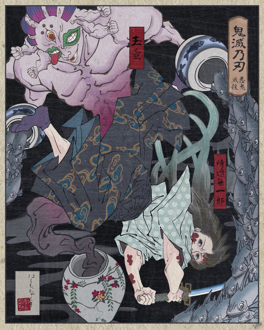 鬼滅の刃 浮世絵風 ファンアート 時透無一郎×玉壺 描かせて頂きました🙏