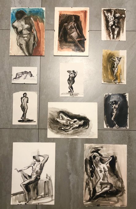 Studies of female body @art_now_uk @AAFLondon @art_now_poland @AAFNYC #artistsontwitter #painting @b_biesek @ArtistTalkMag #study #art #watercolour #yellow #inktober2021 #ink #sketchbook #sketch #drawingart @art_now_canada @singapore