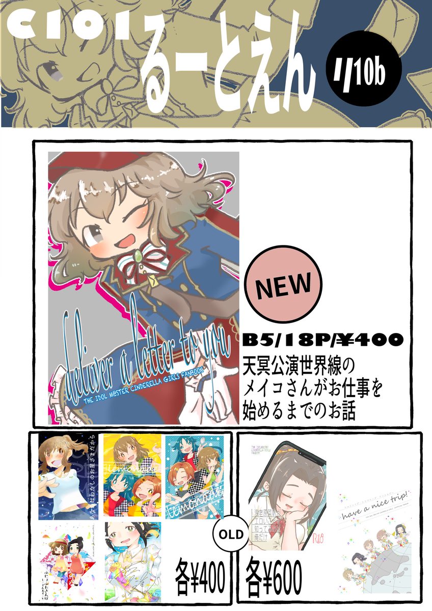 ◎あなたのサークル「るーとえん」は、土曜日 東地区“リ”ブロック-10b に配置されました。 あああ受かってた……夏に出せなかった芽衣子さん本をなんとか頑張るので応援よろしくお願いします💪