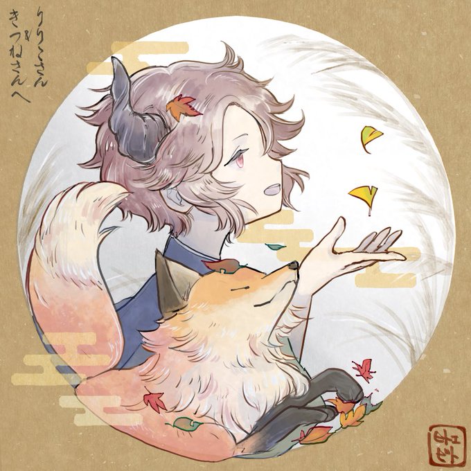 ほんわか仲良し2人🍁 skebのリクエストありがとうございました!🦊 skeb.jp/@b_hitoebito/w… #Skeb