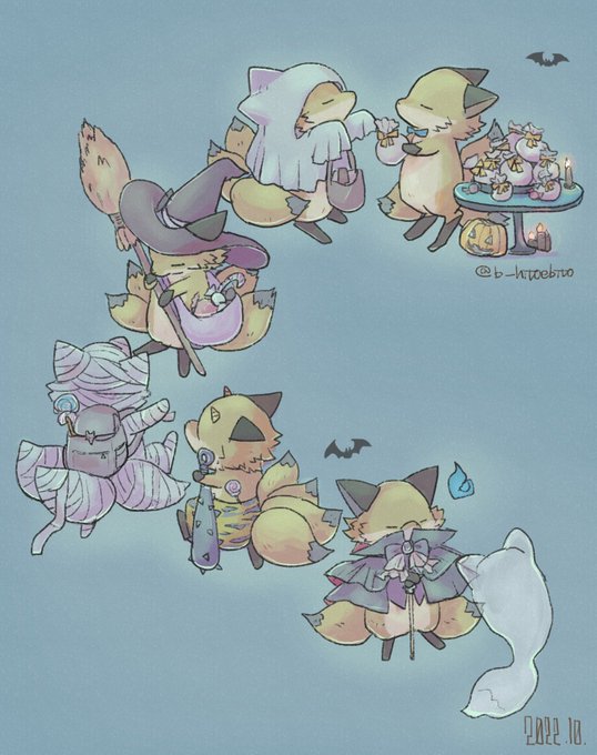 「ハロウィンの行列」🦊🍭🎃 さあ並んで並んで…………おや?👻