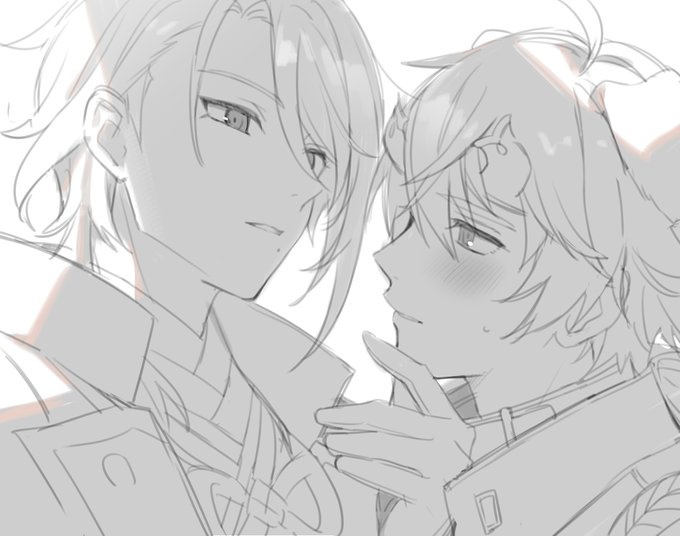 若トマ いつも余裕そうなトマが若に迫られて一瞬固まるところ、見たいな…という絵 #ayathoma