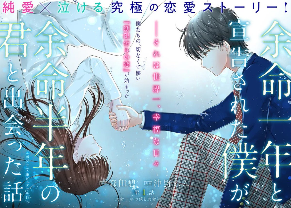 【新連載告知】KADOKAWA様のコミックサイト「COMIC BRIDGE」にて「余命一年と宣告された僕が、余命半年の君と出会った話」原作:森田碧先生のコミカライズ連載がスタートしました。余命短い者同士で出会ってしまった2人の、切なく儚い純愛ストーリーです。ぜひご覧ください!1話無料で読めます😉 twitter.com/COMICBRIDGE/st…