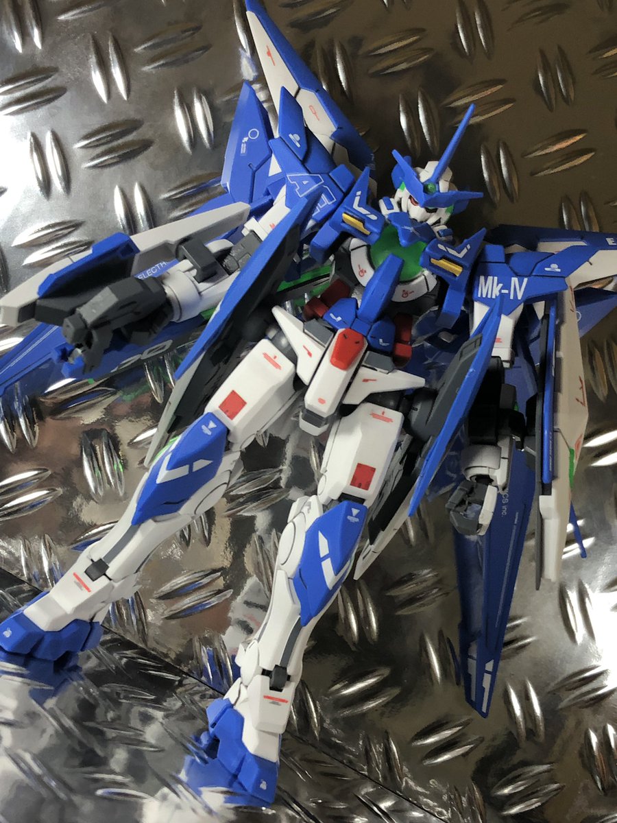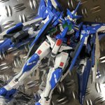 リサイクルショップに組立済みHGアメイジングエクシアがジャンク扱いで500円だったので即購入! ゲート後はなかなかガタガタだったので出来る範囲で直して、目立つ範囲の合わせ目消しとデカール貼りで完成✨ 頭部の角追加とサイドスカート変更してゴツめに😊 #ガンプラ #アメイジングエクシア