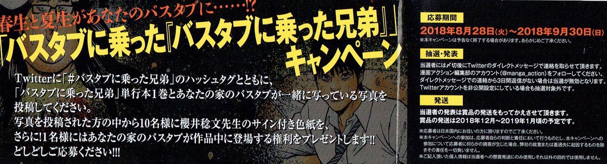 31 98 漫画アクション バスタブに乗った兄弟地球水没記 最終回が載ってます。単行本4巻は3月28日発売です! 20/01/21 12:16