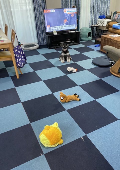 80 485 キッチンで洗い物して出たら犬が遊んで欲しくてギャグでオモチャを並べて笑って待ってた。犬って‥凄い 22/08/24 23:40