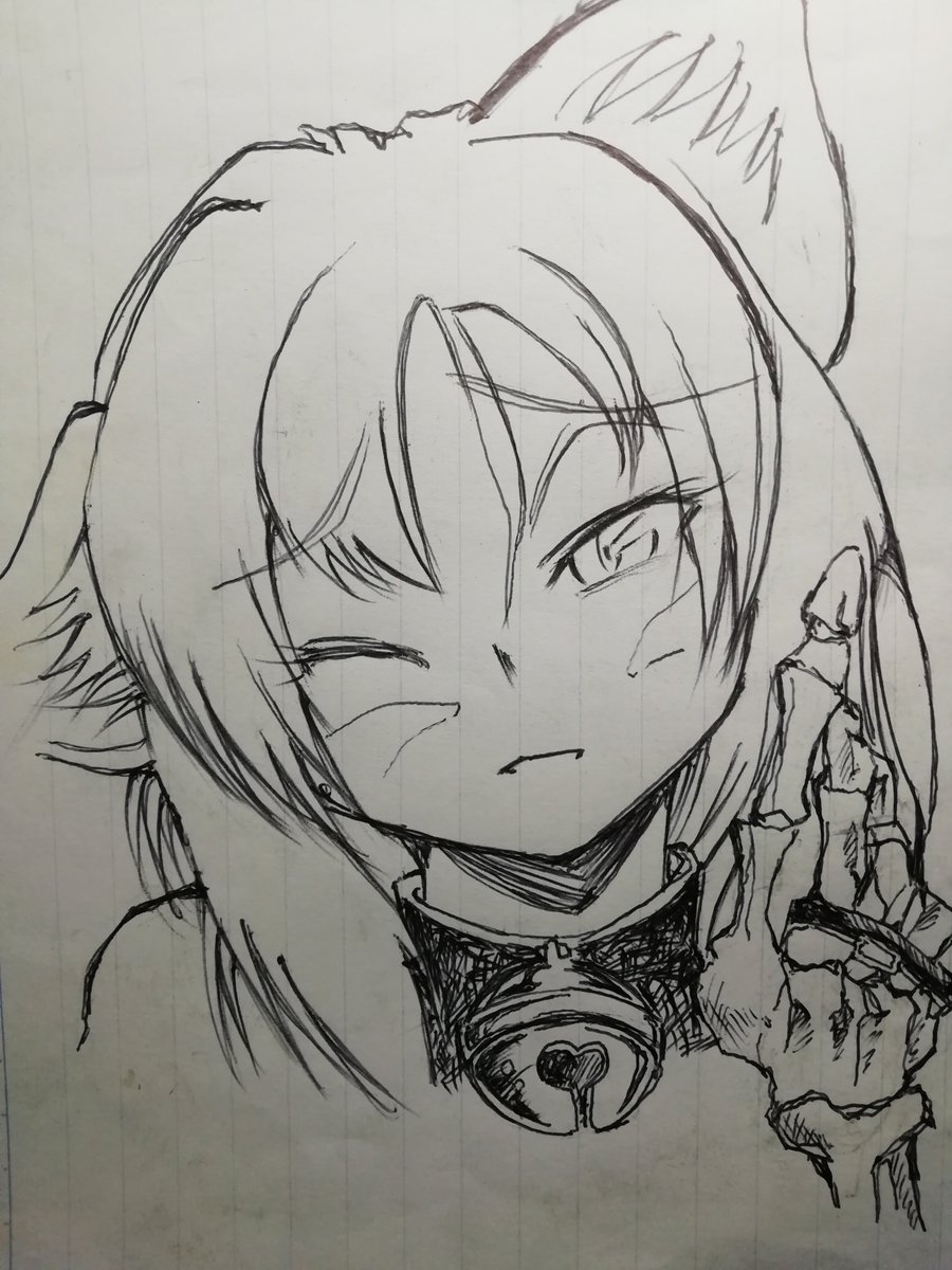 6 32 ボールペンで描いた駒にゃん。 作り置きのポテサは全部食われてしまったし、お絵描きしたいけど、、、キンピラでも作りますか、 21/12/13 19:46