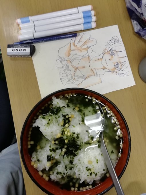 おつかれっす〜〜〜! 弁当でけた。ちょぺっと落書きしてたらこんな時間だよ。 お絵描きは週末のお楽しみだね。すみすみ〜〜〜