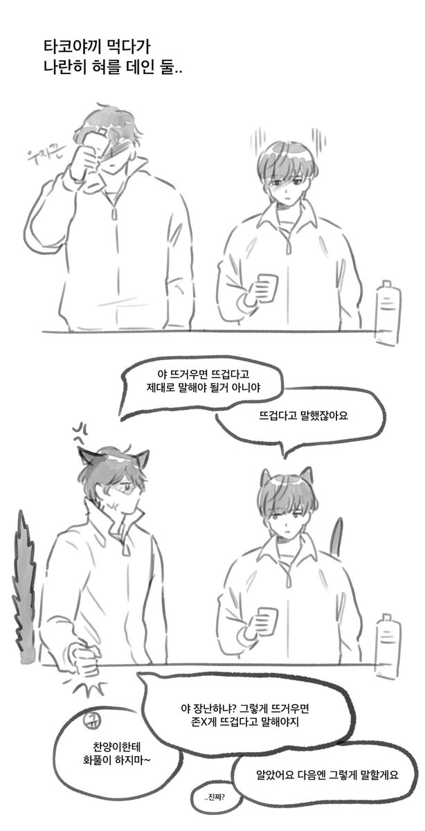 타코야끼 먹는 종수와 찬양.. 오늘도 썰 갈취했어요