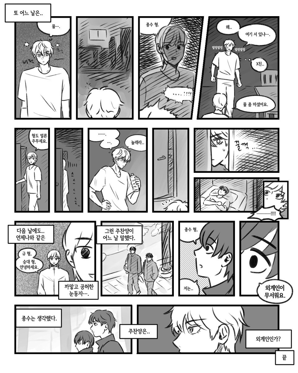종수와 지우개 웃기고 킹받아서 그려봤어요 ㅠ 아 twitter.com/3angle_bro/sta…