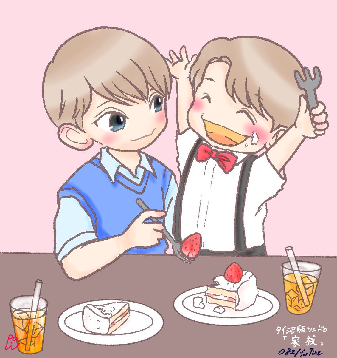 13 149 タイ沼版ワンドロちょっと遅刻 お題 「家族」 今日はタインのお誕生日だから。 「僕のいちごもあげる🍓」 「ぴたい!ぴたい、大好き🍓」 #タイ沼版ワンドロ #タイタイ兄弟 21/08/21 22:13