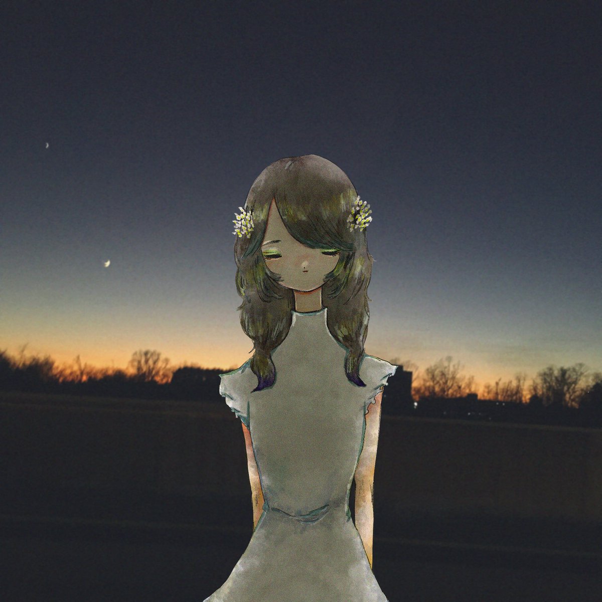 少し前に撮った夕焼けの写真に女の子描いてみた☁︎☁︎☁︎ #私の絵柄が好みって人にフォローされたい #創作