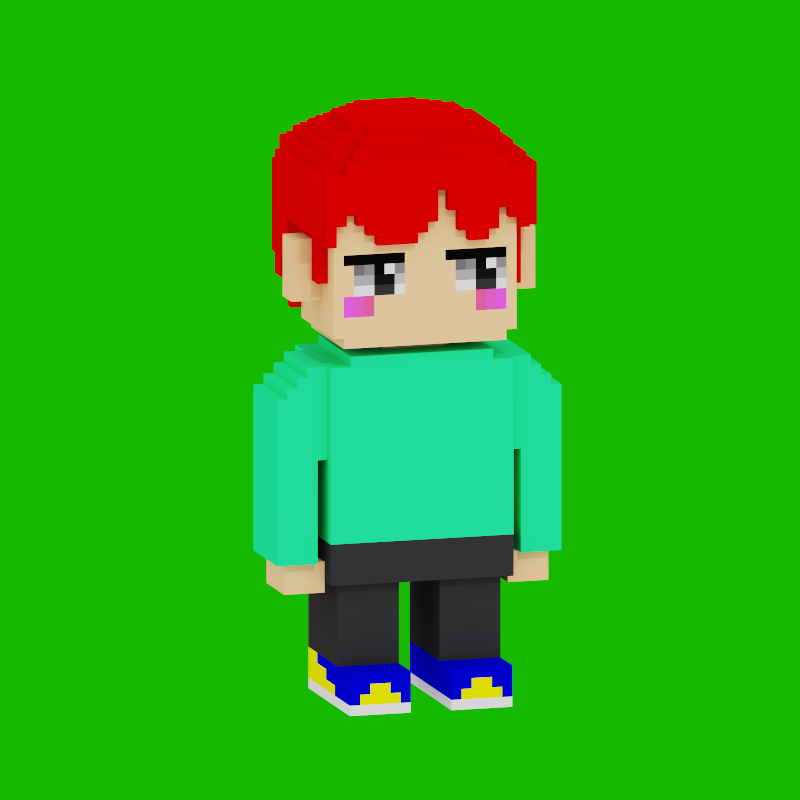 初ボクセル!たのしいっ🙃 MagicaVoxelで作ってみたけど、レンダリングでボクセルちゃんが浮いてるのはなぜ…?あきらめて影なしにして保存したった。 あとは色センスどーにかせんと…🤔#nft #voxel #voxelart
