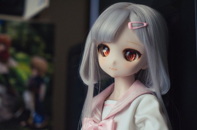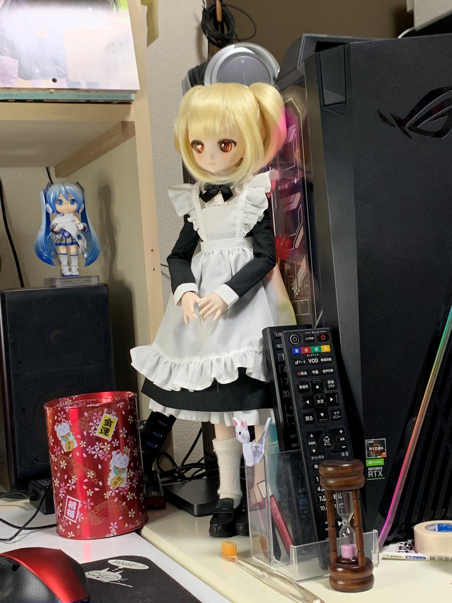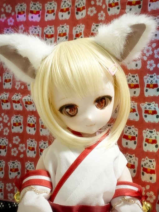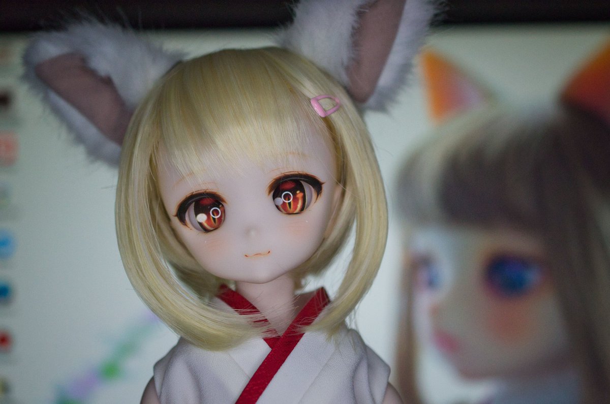 角度で表情が変わる例。例っつか霊。この子、付喪神入ってるよたぶん。シンガポールからはるばる海を越えて来たのだものね。室内灯のみスマホ撮影でもいけるな。こゃ~ん🦊 #うちのこかわいい #Floralgarden娘 #MDDはいいぞ