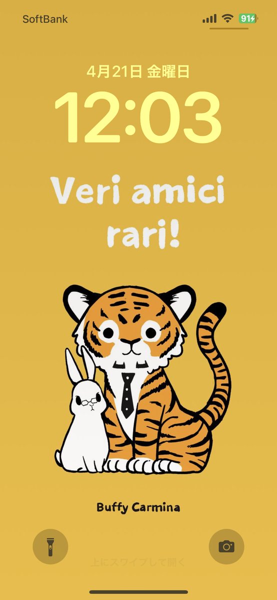 背景の色変えても可愛かったからこっちはロック画面の壁紙にしてみた🐰🐯