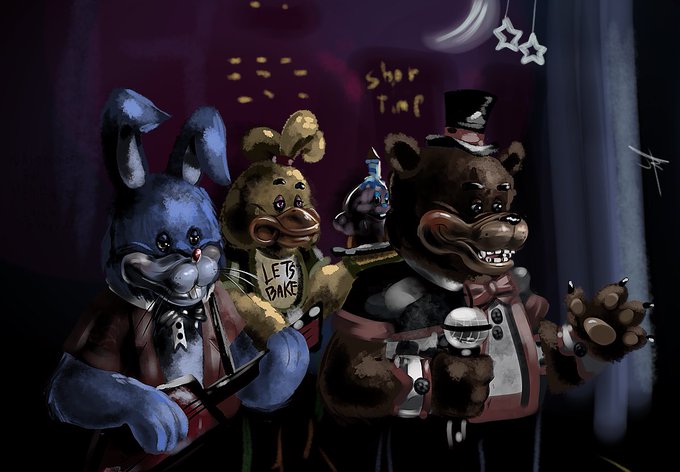 “Henry I’m not joking, the bear is literally outside the office door staring at me, what the hell do I do? No no way I’m not touching that foul mask from the old arcade-“ #fnaf#fanart