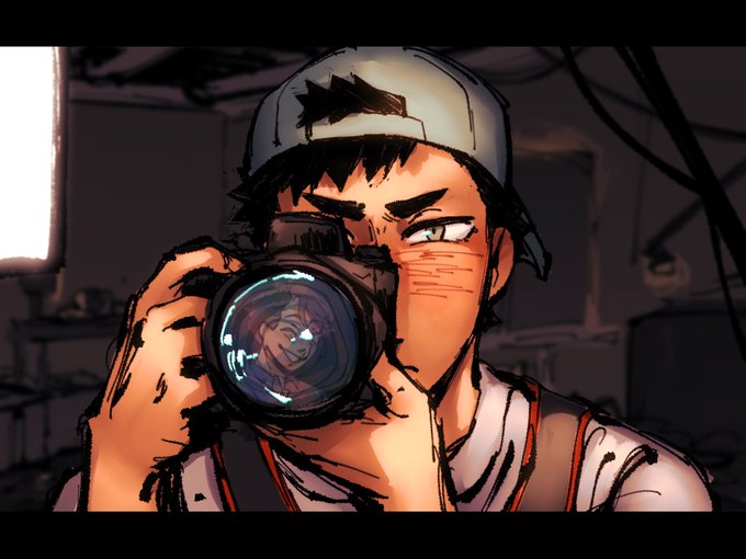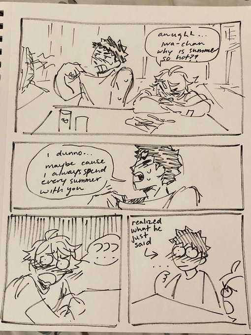 DREW SOMETHING FOR @iwaoiauweek DAY 1 BC I THOUGHT IT WAS TODAY BUT IT WAS YESTERDAY.... photographer iwa and model oiks bc bc. yeah. #IwaoiAUWeek #haikyuu