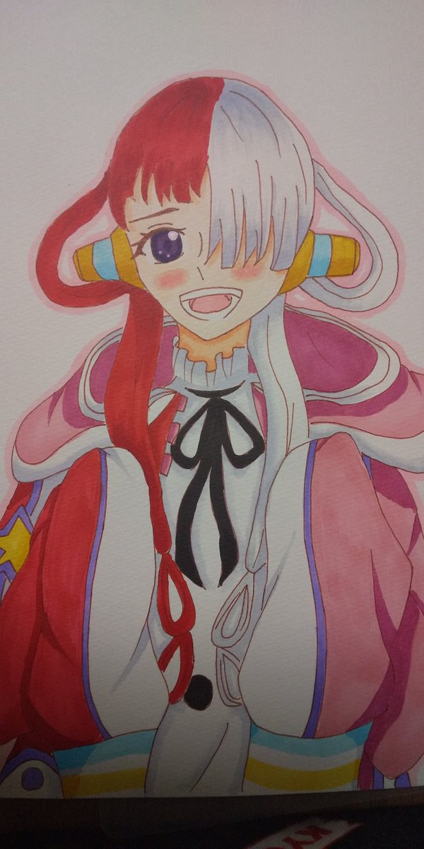 ウタちゃん描いてみました! 『やっぱり男の子より女の子の方が描きやすいね!自分の絵柄が男の子に合わない…。』 ↑ 「負け惜しみ〜。」 #ONEPIECE #ウタ #イラスト #本気絵 #アナログ #絵描き
