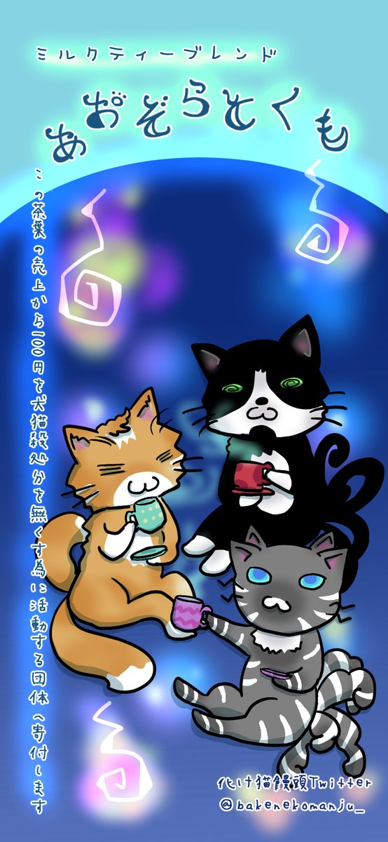 参加させて頂きました。紅茶葉の売上の一部が犬猫用チャリティーになるそうです。妖怪猫又がお茶してるイラストのラベルを描きました。10/8から販売開始。ミルクティーどぞー! #猫町茶 twitter.com/GalleryArtsoup…