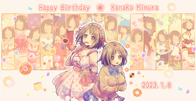 かな子ちゃんHappyBirthday🍰&モバマス11年間ありがとう! モバマスのかな子ちゃん専用お衣装を背景に描いてみました!改めて描いてみるとお衣装が沢山あって感動!一着一着思い出がつまっているね🧁これからも甘い魔法をかけ続けてくださいだいすき! #三村かな子生誕祭2023 #三村かな子誕生祭2023