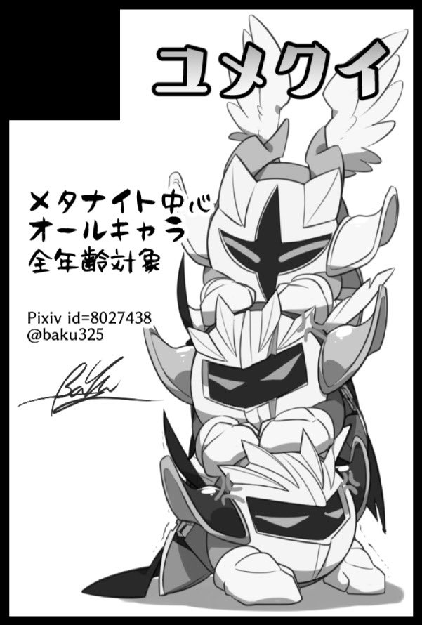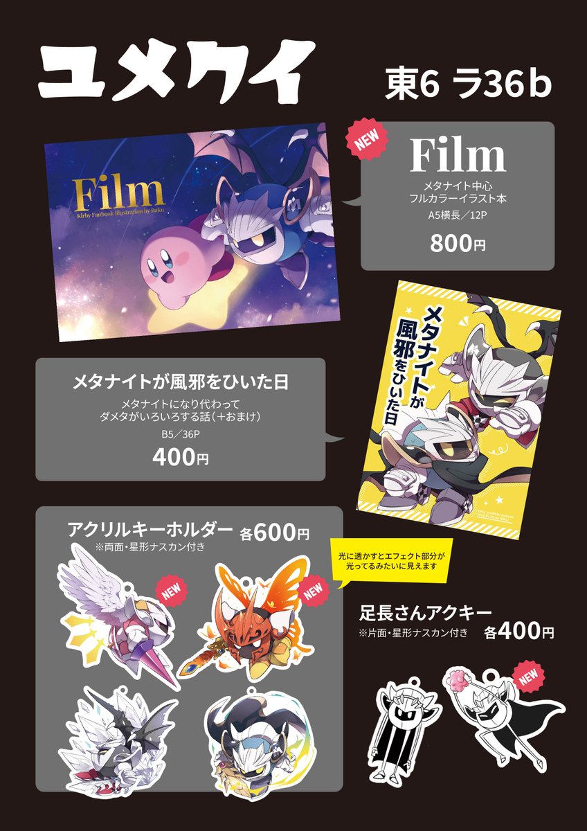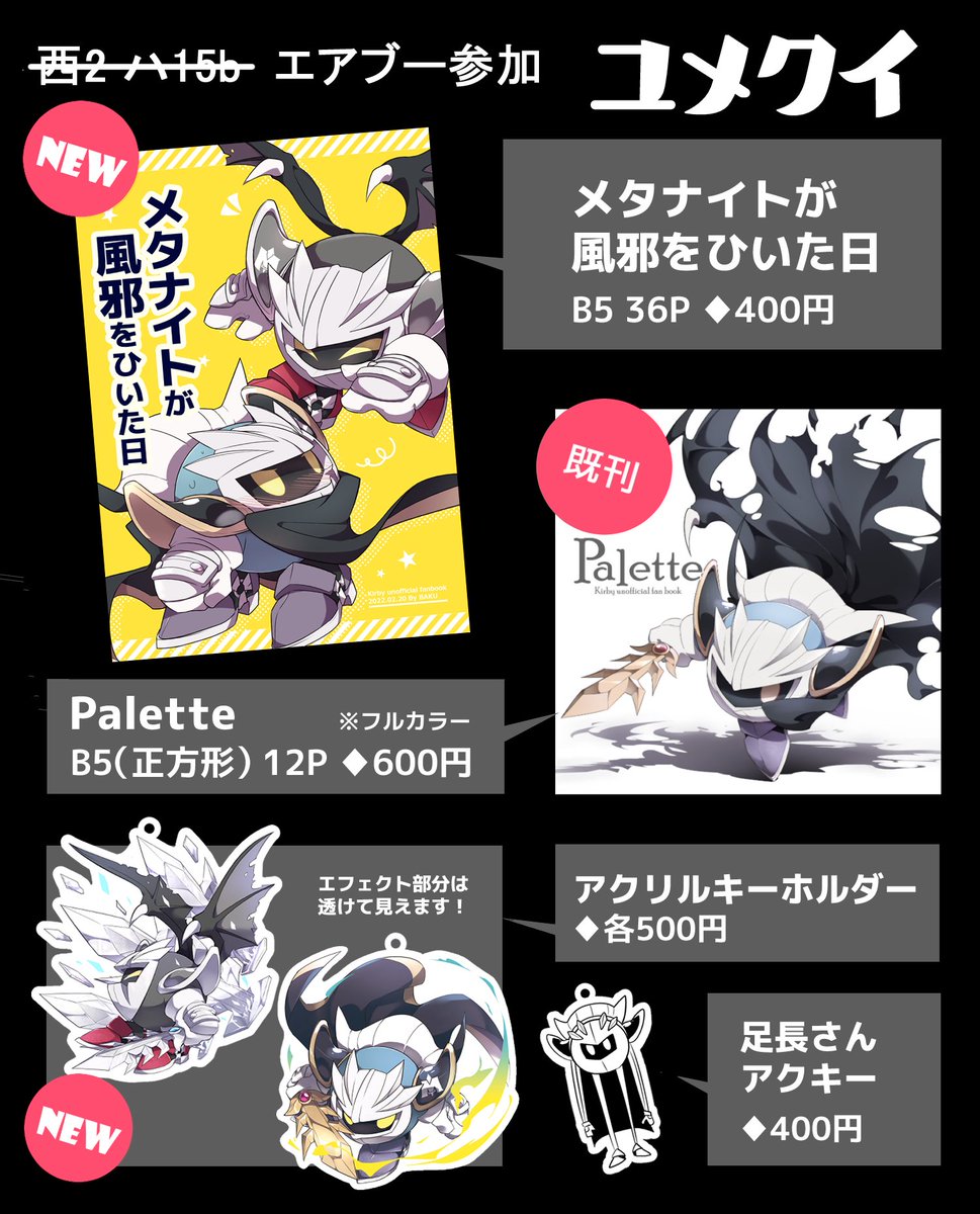 20 91 「メタナイトが風邪をひいた日」のサンプル③ 風邪をひいたメタナイトになり代わって、わちゃわちゃするだけのお話です。 ほんっっっのりダメタメタ風味の全年齢オールキャラ本です。 22/02/12 12:08