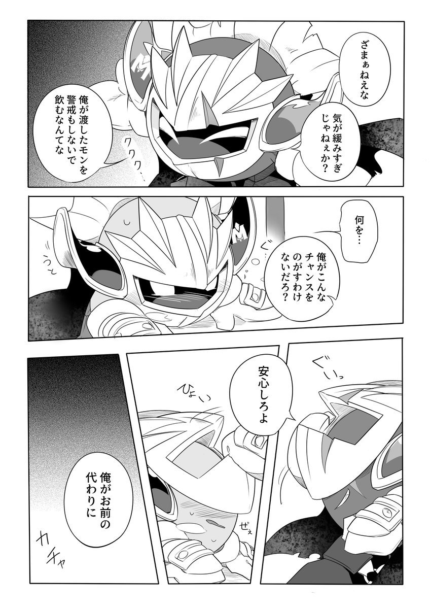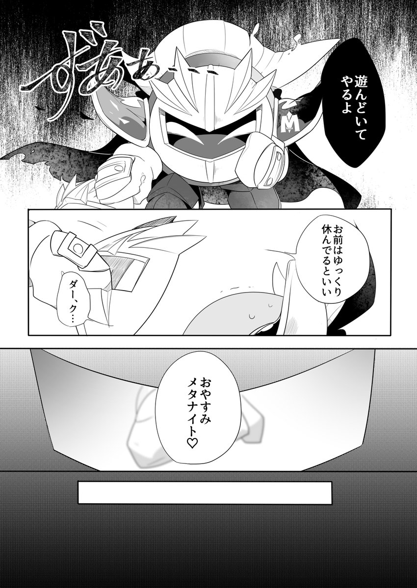 「メタナイトが風邪をひいた日」のサンプル③ 風邪をひいたメタナイトになり代わって、わちゃわちゃするだけのお話です。 ほんっっっのりダメタメタ風味の全年齢オールキャラ本です。