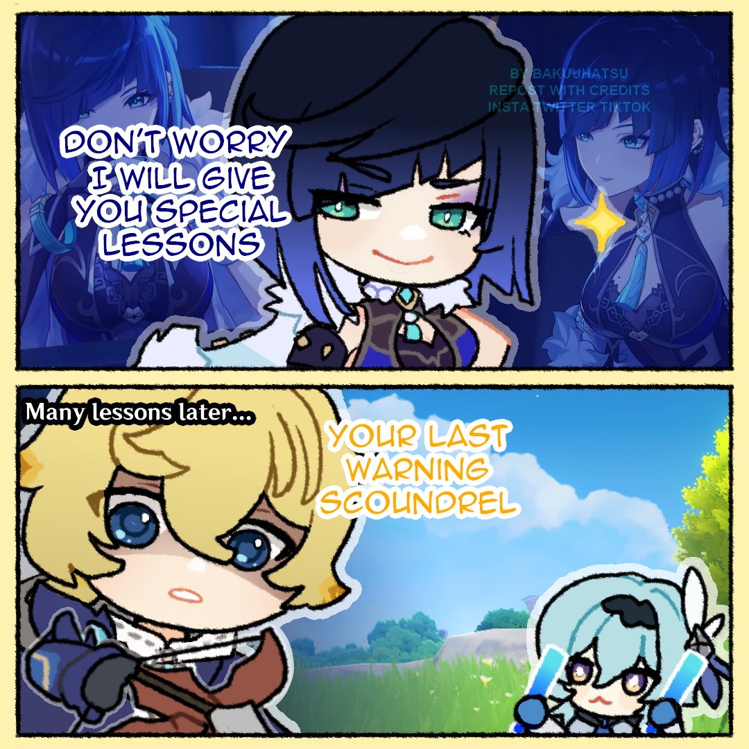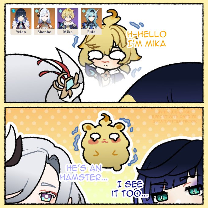 How Mika joins the tall ladies team... A very short comic. #genshinimpact #hoyocreators #genshinfanart #Eula #Yelan #Shenhe