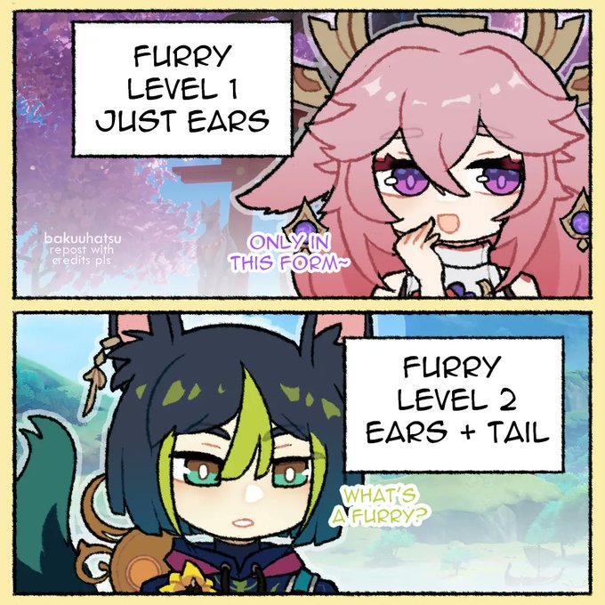 The Melusine looks so cute! If Kirara doesn't have ears, does that mean she's level 2 furry 😭?? I messed up... #genshinimpactfanart #GenshinImpact #yaemiko #tighnari #kirara Blue eyes are the result of a poll I did, not genshin impact leak 👍