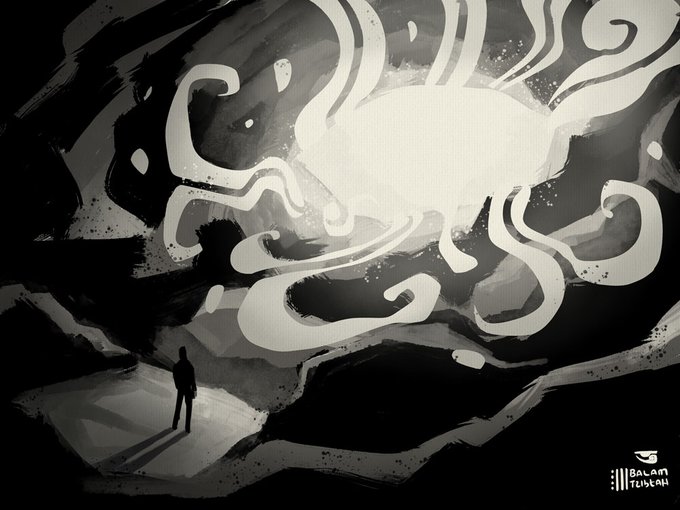 Luz. Primero tengo que aclarar que soy claustrofóbico... Esto es lo que siento cuando vamos de salida de una caverna y empiezo a ver la luz de la salida. Para mí la luz es igual al fin de una prueba muy personal. #noinktober #inktober2020 #cave #cueva #espeleologia