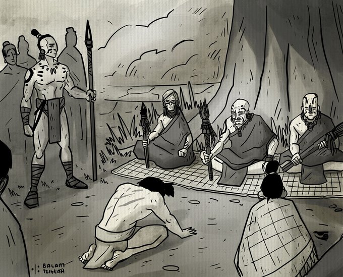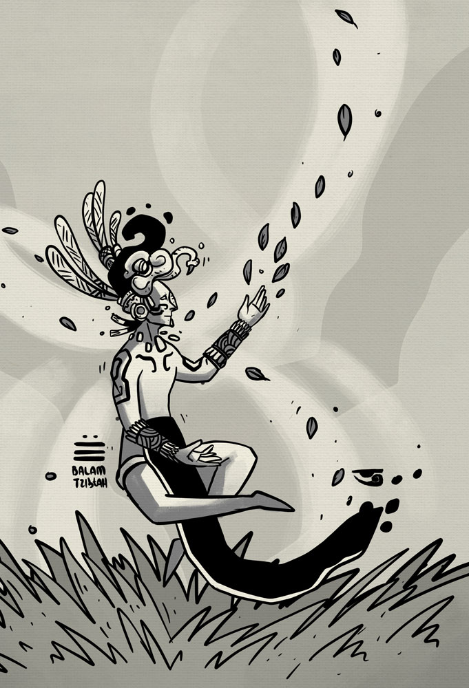 Magia. Los xamanes eran los sacerdotes y vínculo terrenal de los dioses. Eran los encargados de manejar y transmitir toda la magia de todos los tipos: Desde herbolaria curativa hasta hechizos y maleficios. #noinktober #inktober2020 #mayan #maya #xaman
