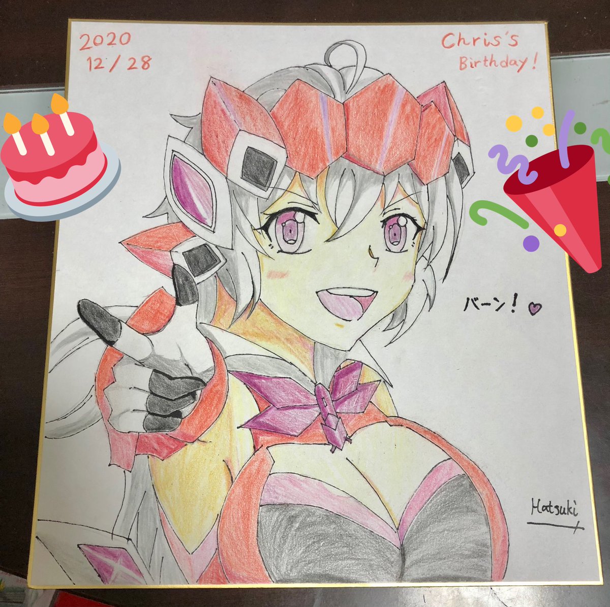 明日4時起きで仕事だから、ちょっとフライングだけどクリスちゃん誕生日おめでとう(っ'-')╮=͟͟͞͞🎂 #雪音クリス生誕祭2020 #雪音クリス生誕祭 #symphogear #シンフォギア生誕祭イラスト