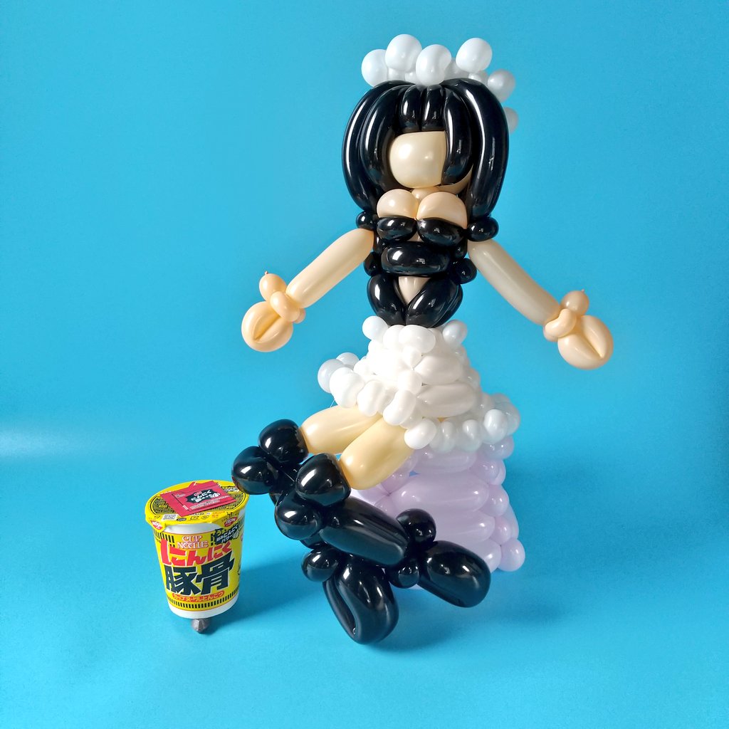 【カップヌードルが得意料理のマイメイドロイド】 あー、これは「ぼっしゅう」になってしまうやつだな。😅 #でんぱイラ #日清でんぱオンライン #バルーンアート #BalloonArt #造型氣球 #풍선 #풍선아트 #公式ふうせん部 ※撮影終わったんで、カップヌードルは美味しくいただきます。🍜