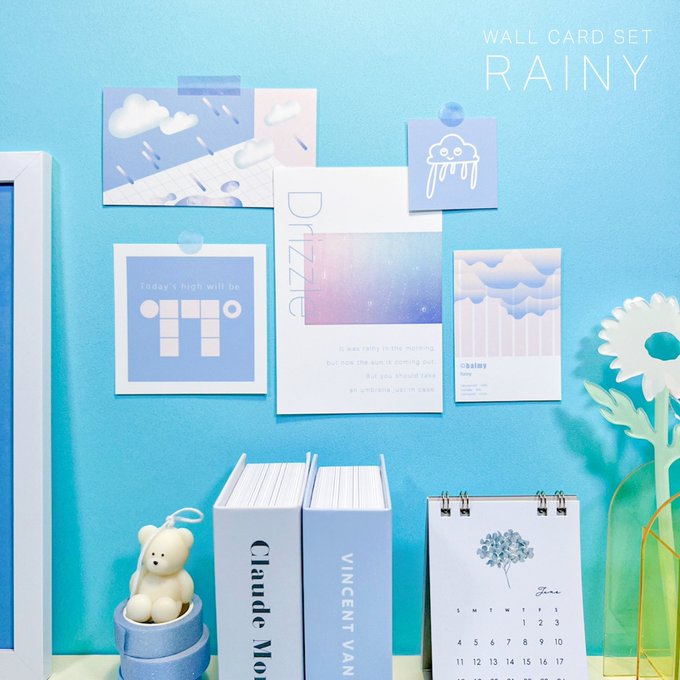 \商品紹介③/ #デザフェス56 で販売する、ウォールカードセットを紹介します!全3種です☔️☀️⛅️ 1セットに5枚入っており、壁に貼ってお部屋を可愛くすることができるアイテムとなっております✨ #balmy #デザフェス #designfesta #イラスト #illustration