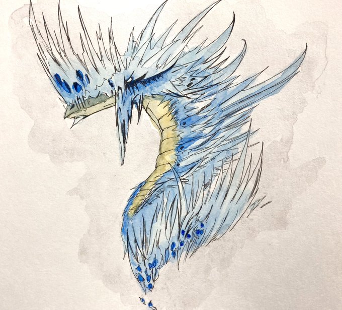 いいですよね…かっこいいですよね… #絵描きさんと繋がりたい #水彩画 #モンハン #イヴェルカーナ #アナログ