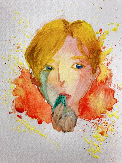 2 11 弾ける #絵描きさんと繋がりたい #水彩 #唇 21/12/21 20:10