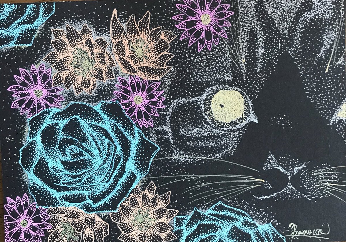 family cat 姉にあげるポストカード完成!🥳 #ペン画 #点描画 #イラスト