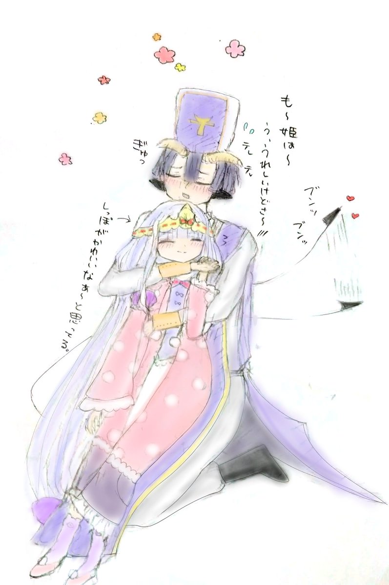 2 9 前にあげたらくがきてきとーに色塗りして遊んでた ※これは🐐の部屋でくつろいでたら👸が急に膝の上に乗ってきて「ぎゅっとして?」と言われた🐐 21/09/22 08:37