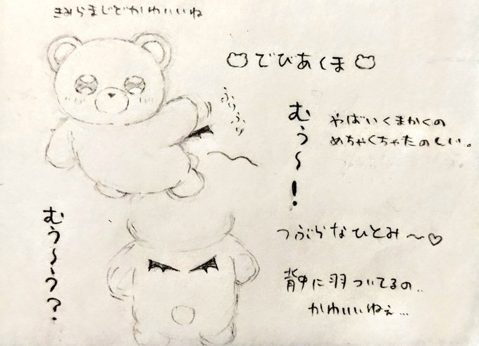 くま描くのめちゃくちゃ楽しいっていうらくがき。 くま初描きで最初はかわいい〜♡って思いながら描いてたんだけど後で先生のくま見たらくまのかわいさを全然再現できてない…っ!てなったからもう一匹描いた。