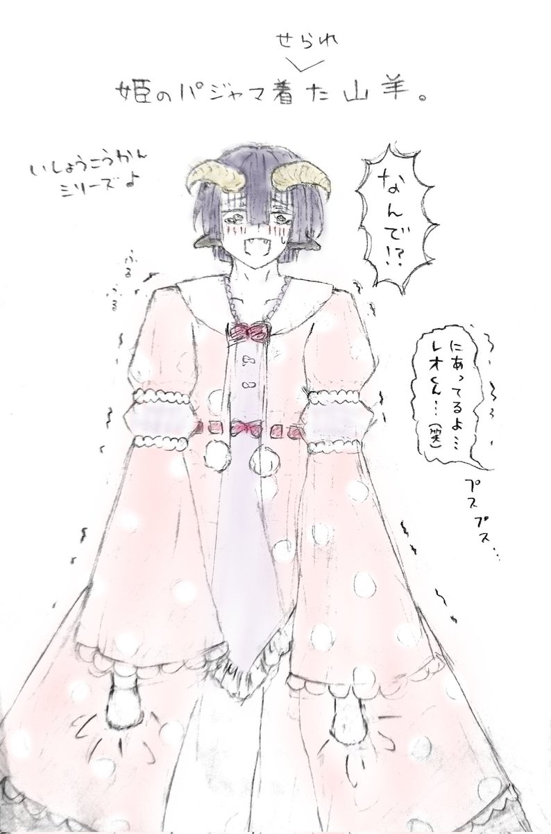 3 20 今日はやることなすことなんも頭に入ってこなくて何も考えられなくなってたので姫のパジャマ着た🐐さん描いたよお〜(脈略なし)最初は長髪だったんだけどはたらかなくなった頭が短髪の方が罪深い仕様になるのでは〜?って言うからそうした。 21/11/02 21:39