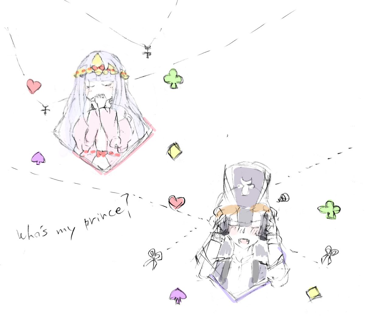 前にあげたらくがきてきとーに色塗りして遊んでた ※これは🐐の部屋でくつろいでたら👸が急に膝の上に乗ってきて「ぎゅっとして?」と言われた🐐