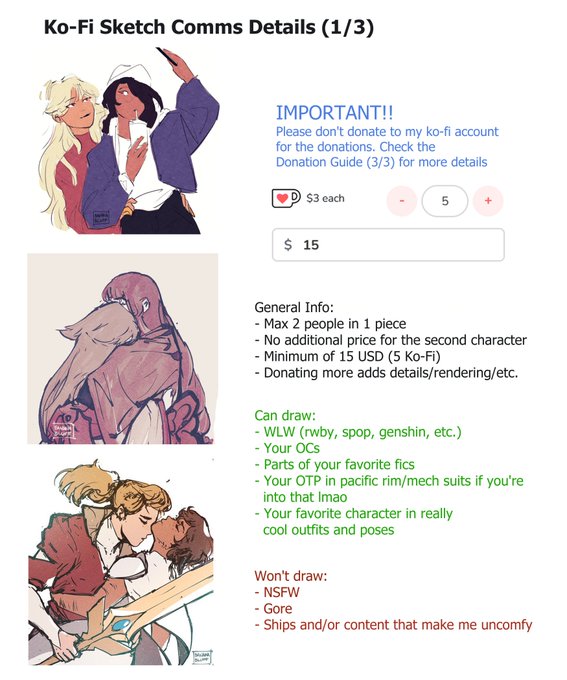 ✨Hi! I'll be opening donation sketch comms and a raffle for fully rendered piece for pride month 🤸 More details are here and under the replies :D I'd be very grateful for RTs and boosts 🙇