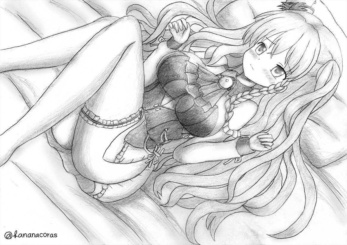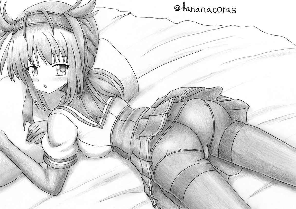 #艦これ版深夜の真剣お絵描き60分一本勝負 #艦これ版真剣お絵描き60分一本勝負_20211008 日付跨ぎが当たり前になってしまった・・・。 初月の出す独特の色気が好き。 (多分全身黒インナーの力だとは思うけど)