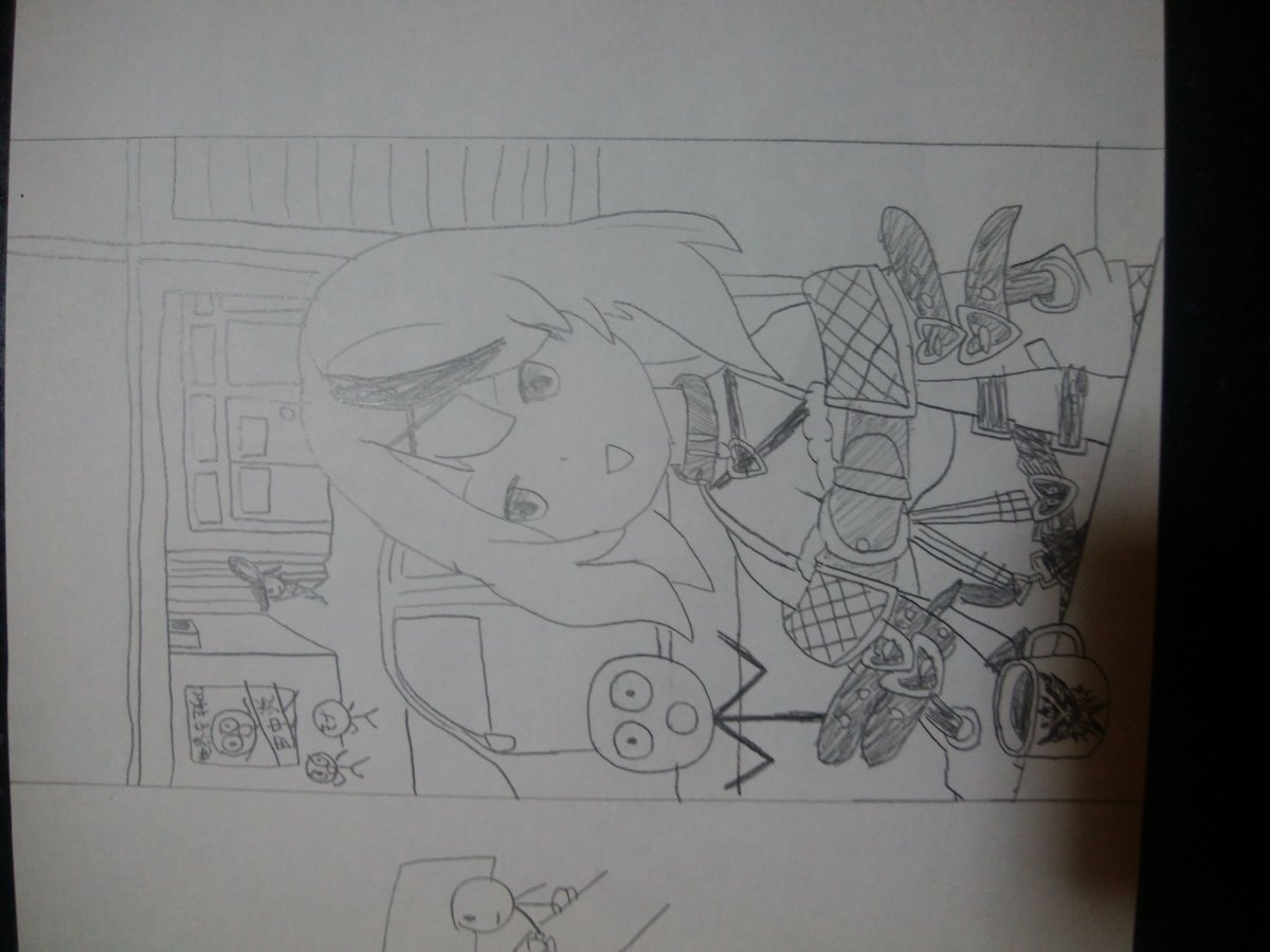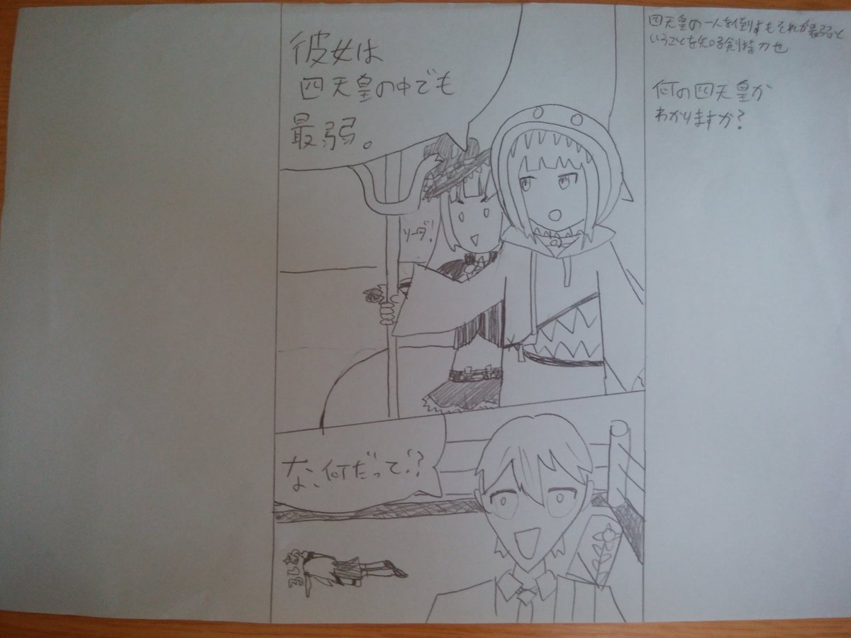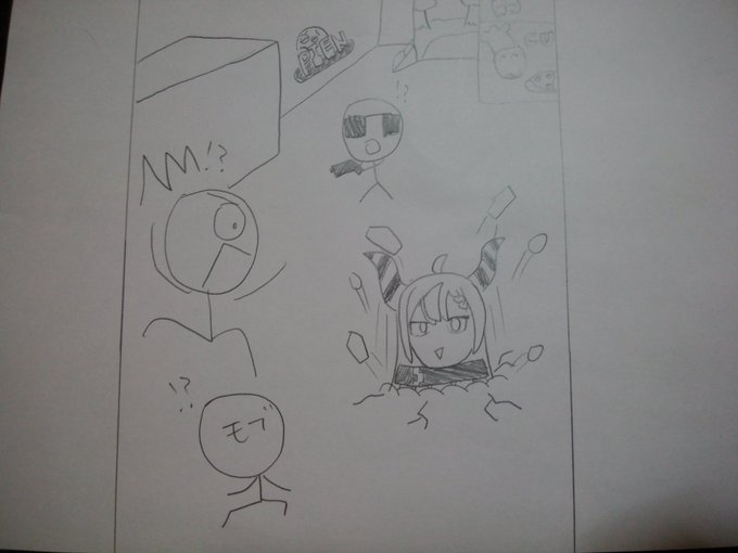 間違えて味方を切ってしまう風真いろはを見守るラプラス・ダークネスを金リボルバーで倒そうとするフィッシュスティックを倒そうとする高嶺ルイ #laplus_artdesu #いろはにも絵を #Luillust #フォートナイトイラスト