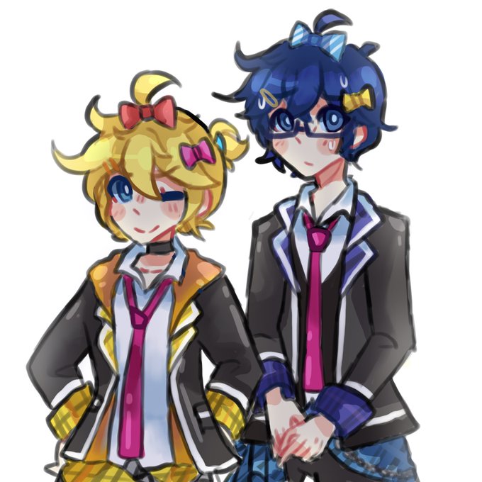 RIBBON BUDDIES Both of them were Rin victims, Len has no problem with it tho- (lazy drawing btw) #鏡音レン #KAITO #prsk_FA