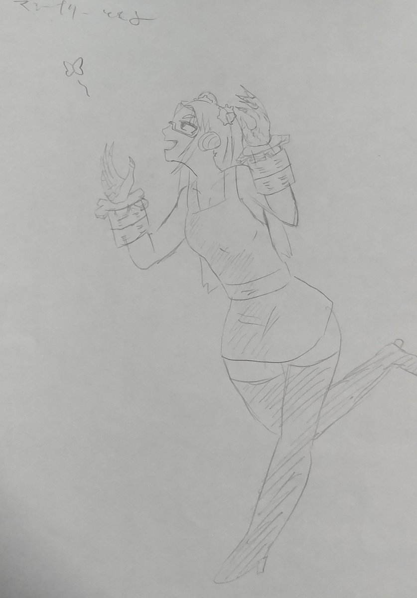 ちょうちょに夢中のマシーナリーとも子 #マシーナリーとも絵