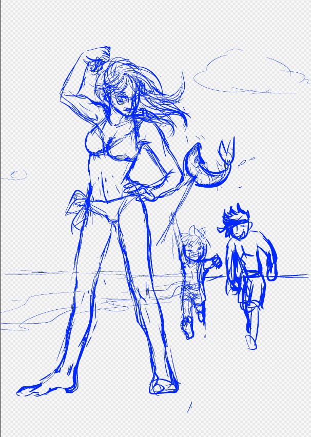 重くなるからラフのレイヤーすぐ消してまう…一枚だけあったwwwさば田さんのwww #このタグを見た人はラフ画とその完成絵を見せる