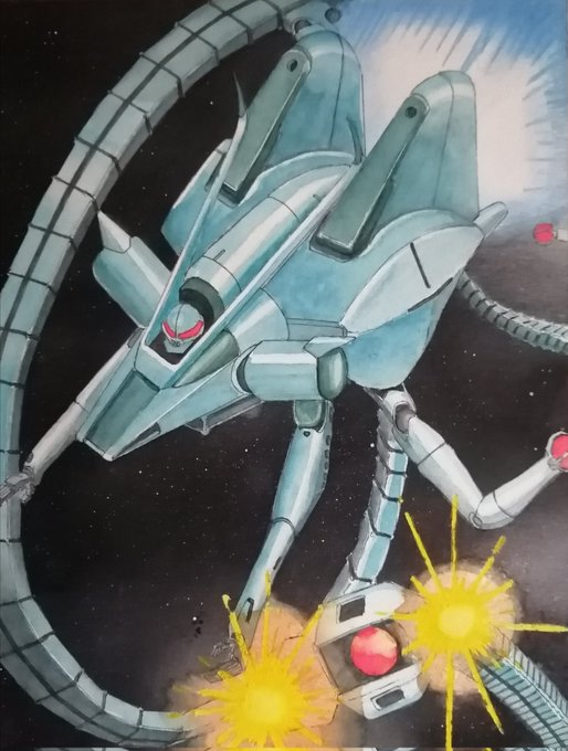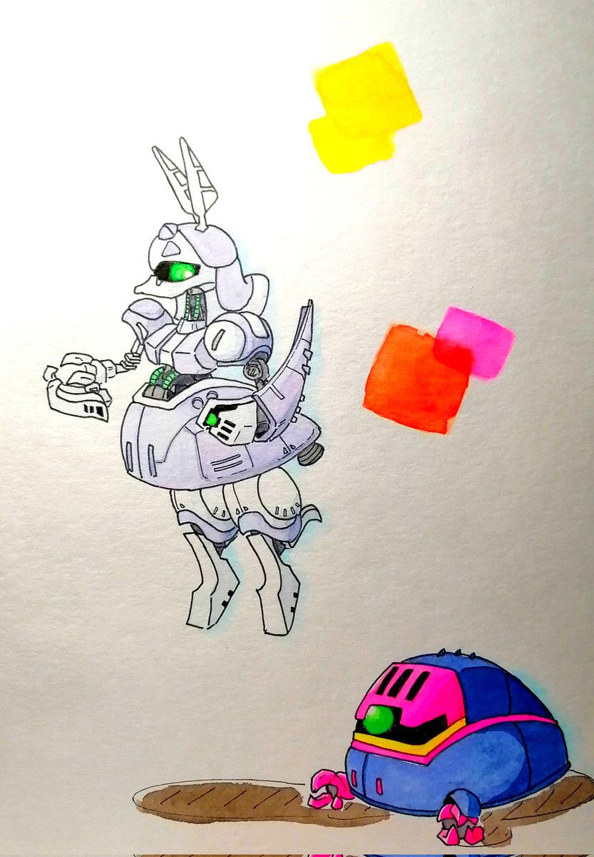 友人からのリクエスト、 #ドッゴーラ って、ドッゴーラ? 存じ上げないんですけど…( #vガンダム 観てない) 全シリーズ通して一番好き♡らしいんだけど、「タツノオトシゴみたいなMS」とも言ってた笑 一部 #水彩色鉛筆 使用 #水彩 #イラスト