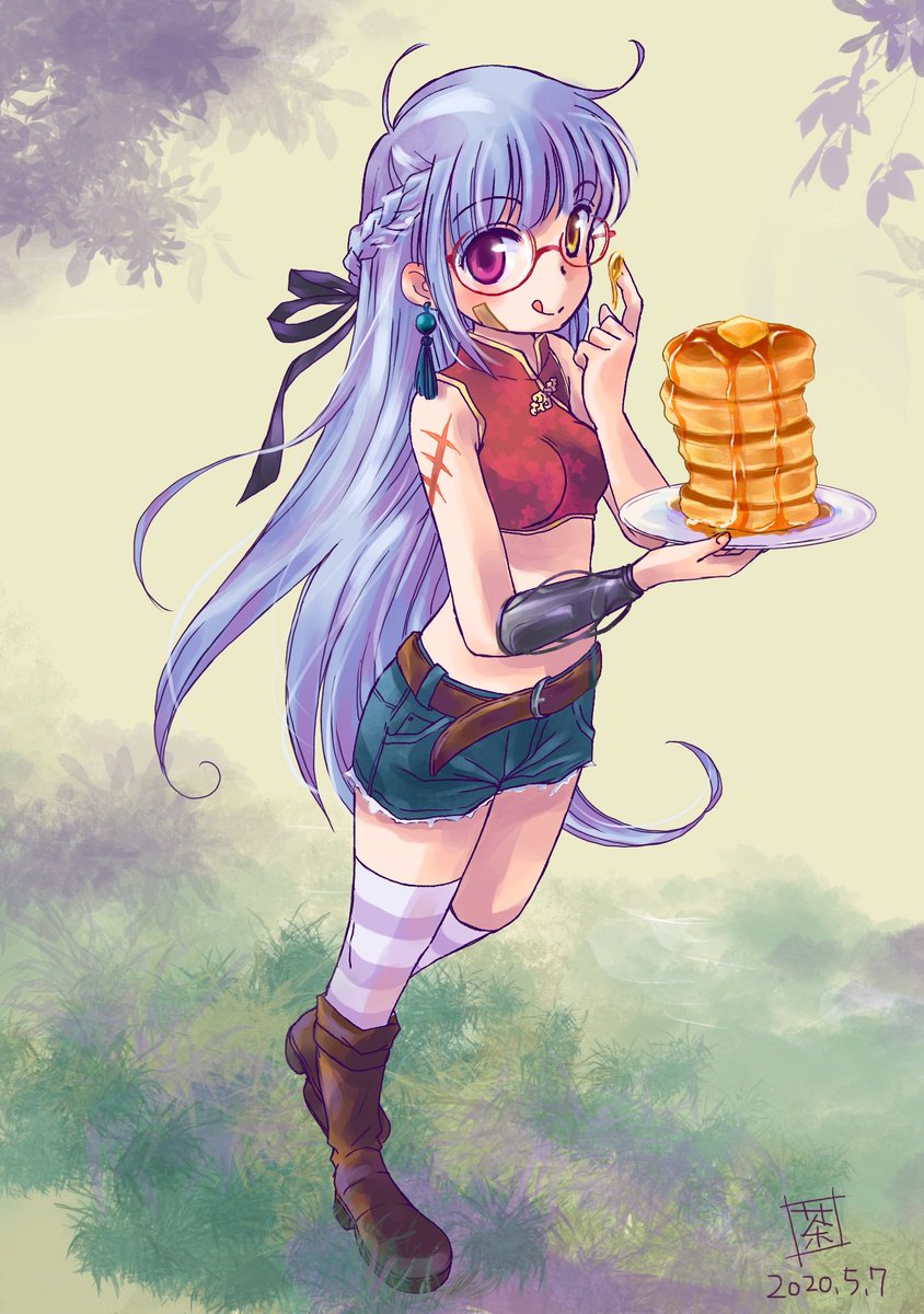 9 34 #はちみつの日 らしいので。 人物よりホットケーキに気合を入れた過去絵 22/08/03 18:28