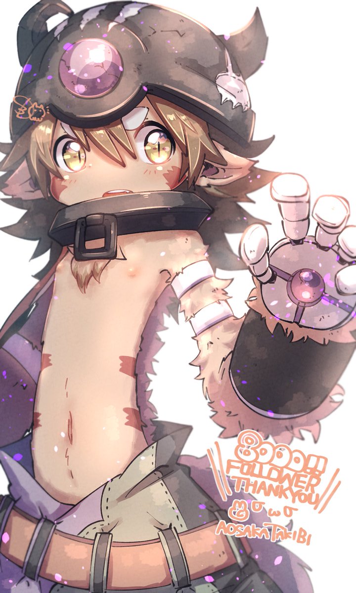 フォロワー8000人到達ありがとうございますー〜!🥳✨ 祝福レグくんでお祝い!ガオガオ!🤖 これからもよろしくお願いします!!🥳🥳 #メイドインアビス #bandam_illust